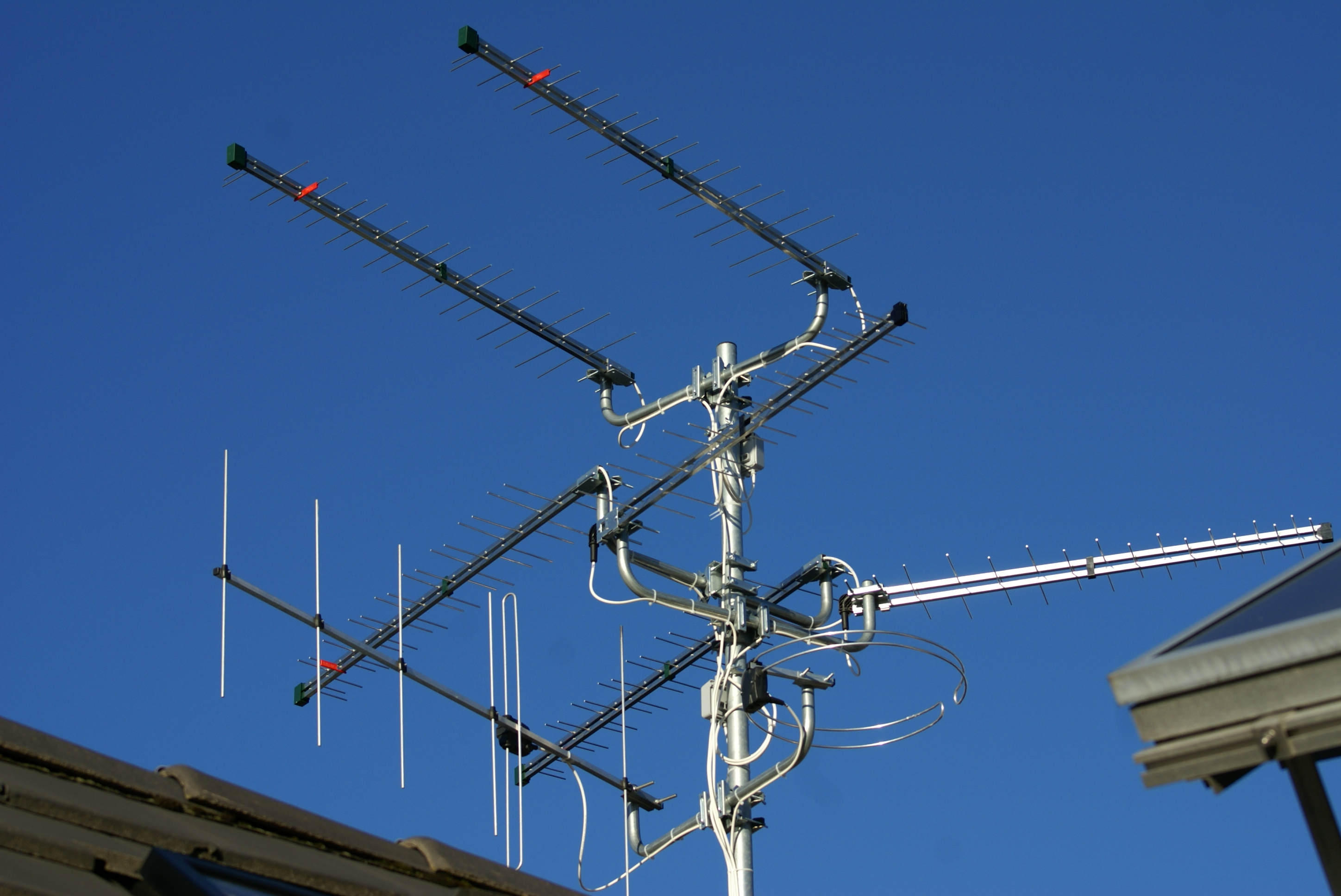 Anténní systém rodinný dům v Hořicích. Příjem českých multiplexů 21, 22, 23, 24, regionální sítě RS8 a RS12, polské multiplexy, FM, DAB. Rozvod do 16 účastnických zásuvek