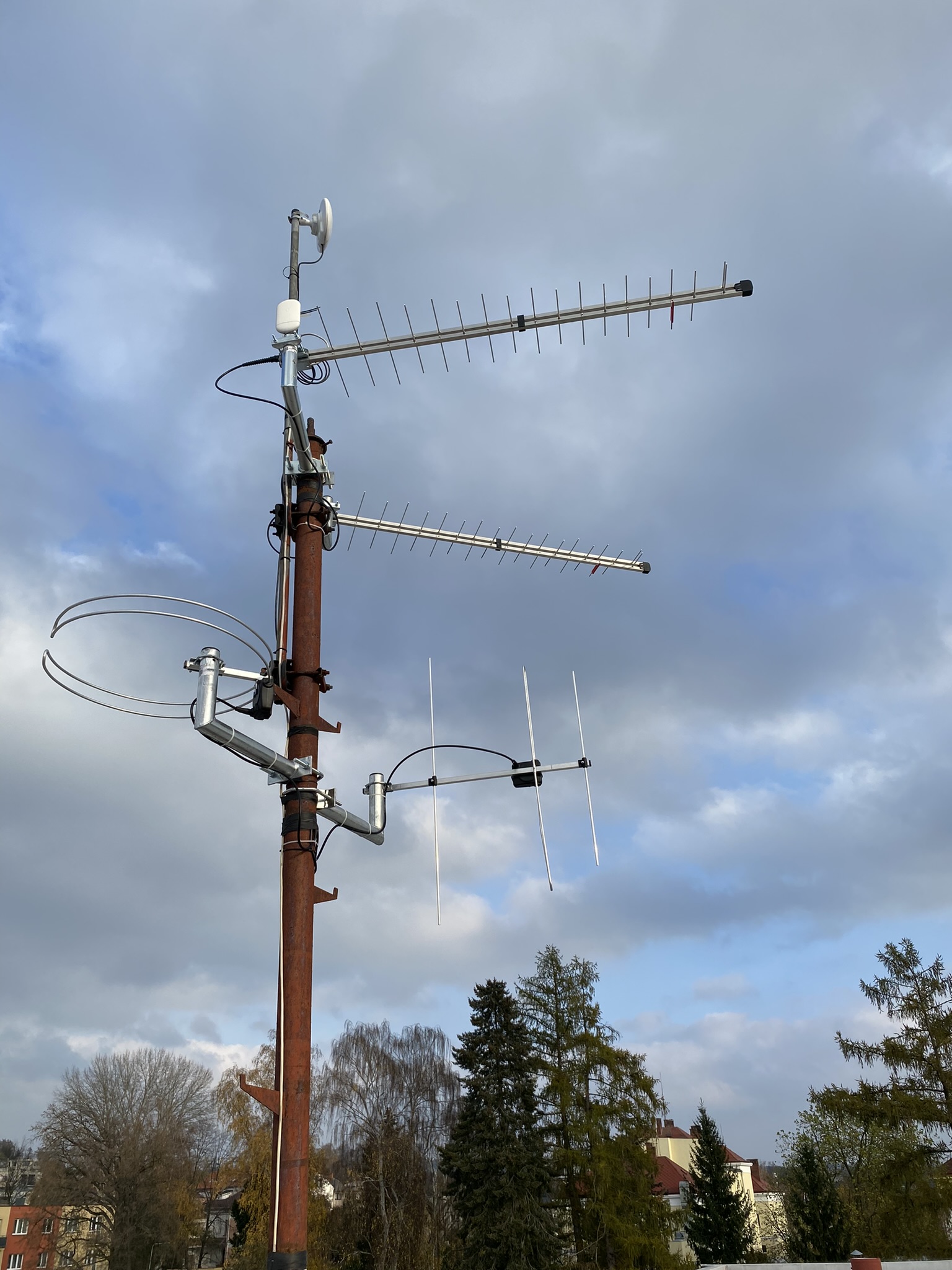 Pod Lipou 1732, Hořice. Anténní systém na střeše. Celoplošné multiplexy, FM, DAB.