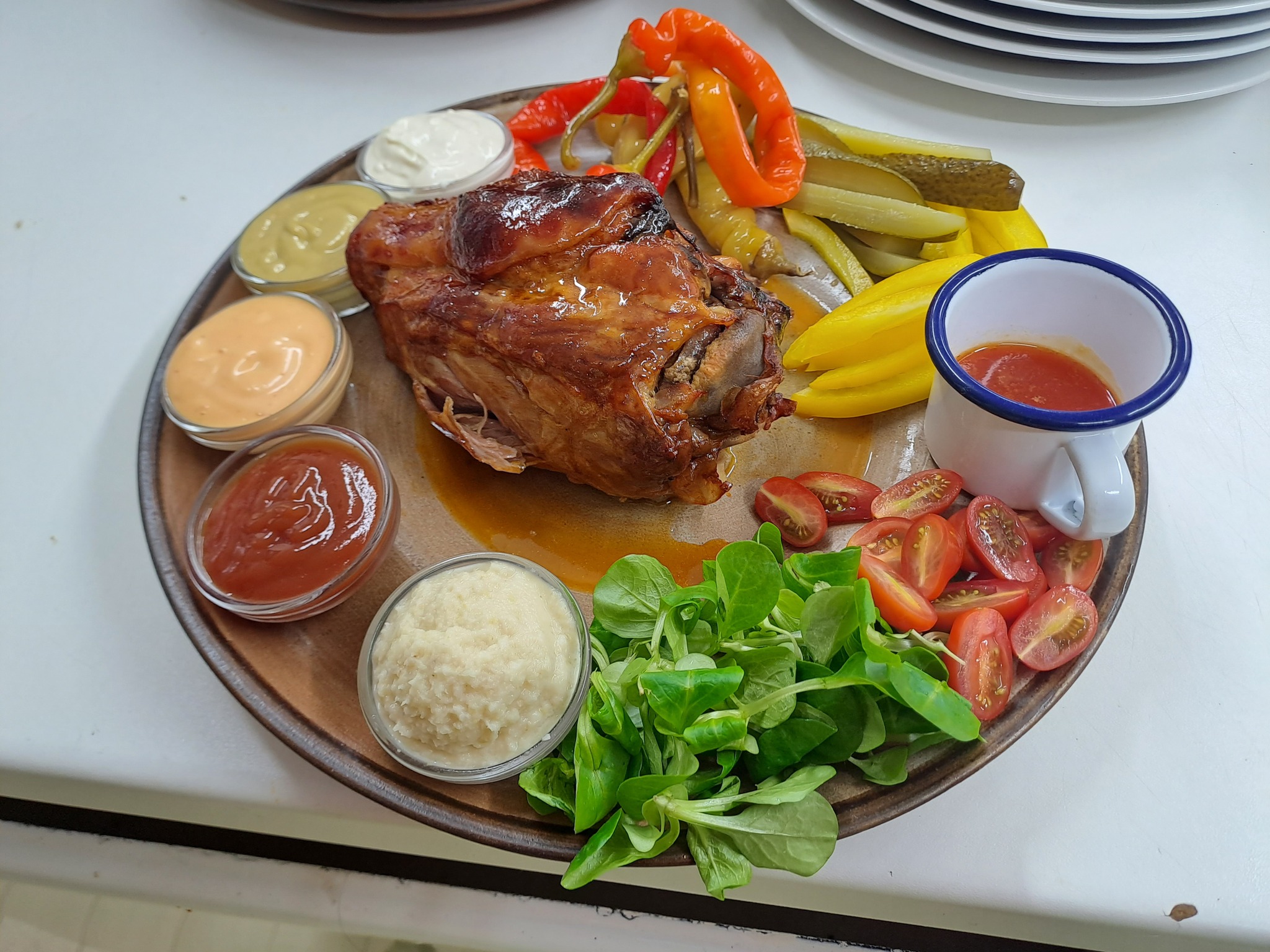 luxusní pečené kolínko od kuchaře v autokempu Milovice