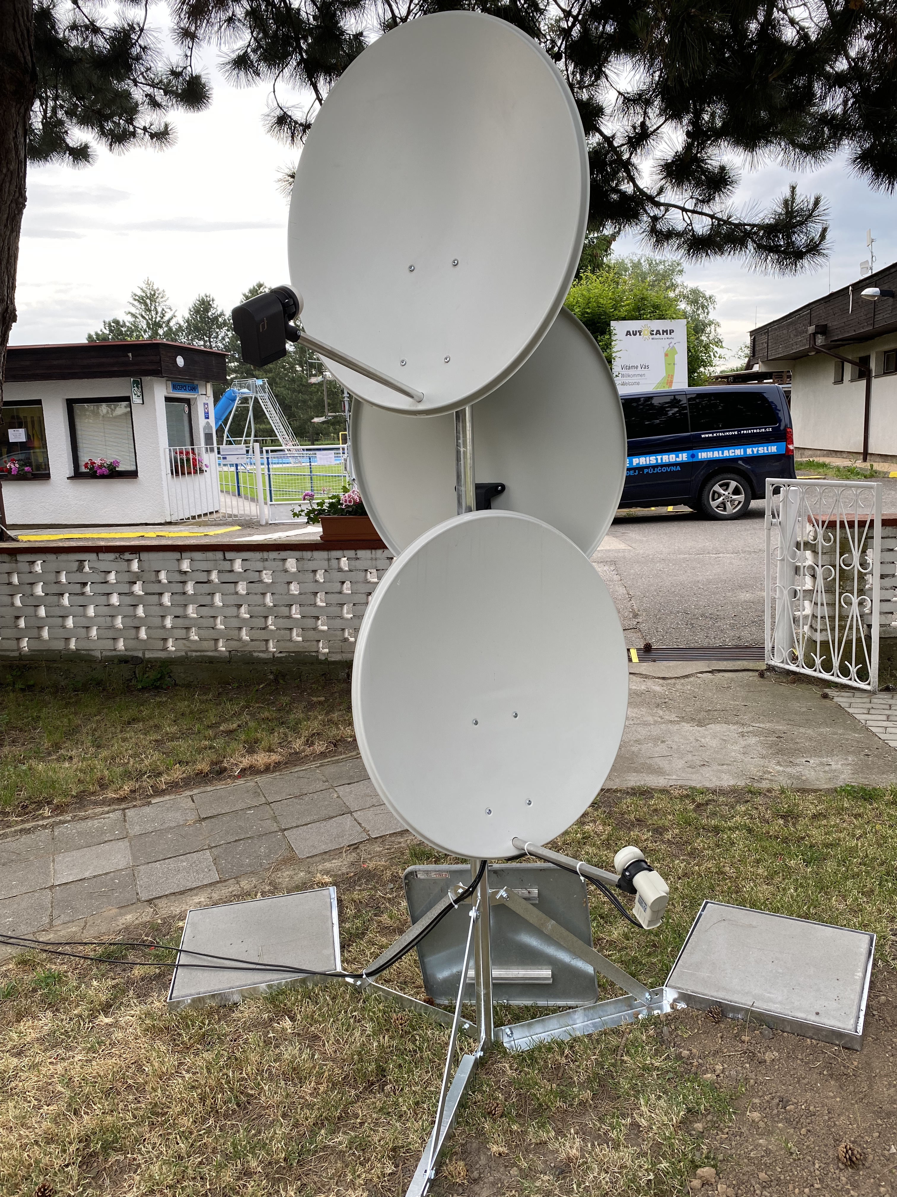 Na satelitním stojanu bylo možno prezentovat různé možnosti satelitního příjmu, a to jak individuálního (jedna družice, příjem s monoblok LNB), tak skupinového (pomocí quattro LNB a patřičného multiswitche).