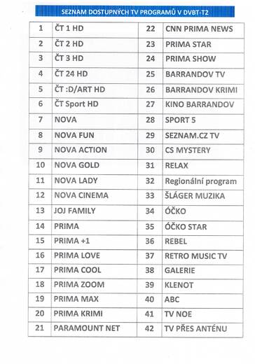 Seznam DVB-T2 programů